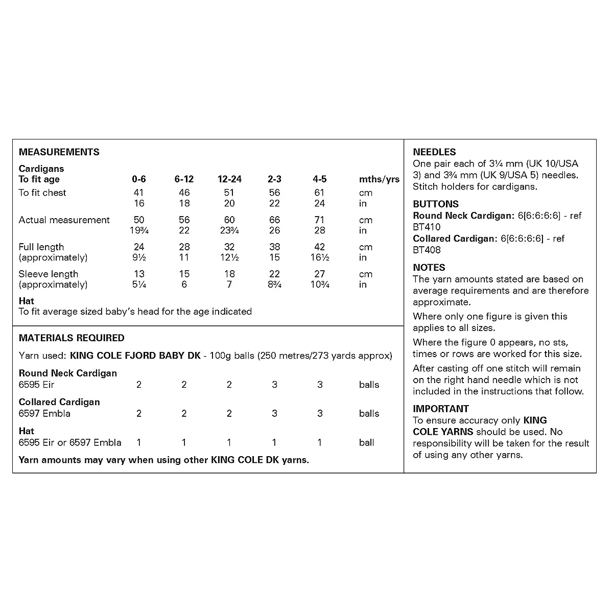 Knitting Pattern 6462 - Cardigan & Hat in Fjord Baby DK