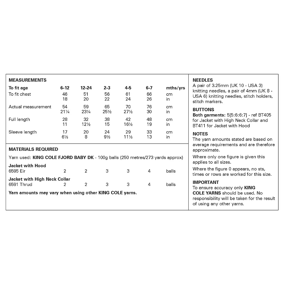 Knitting Pattern 6463 - Jackets in Fjord Baby DK