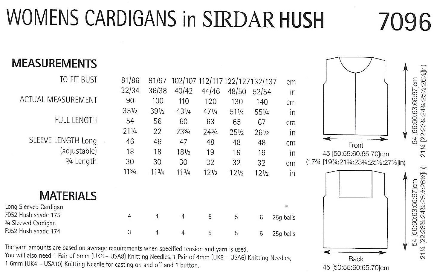 Knitting Pattern 7096 - Cardigans in Sirdar Hush Lace Weight