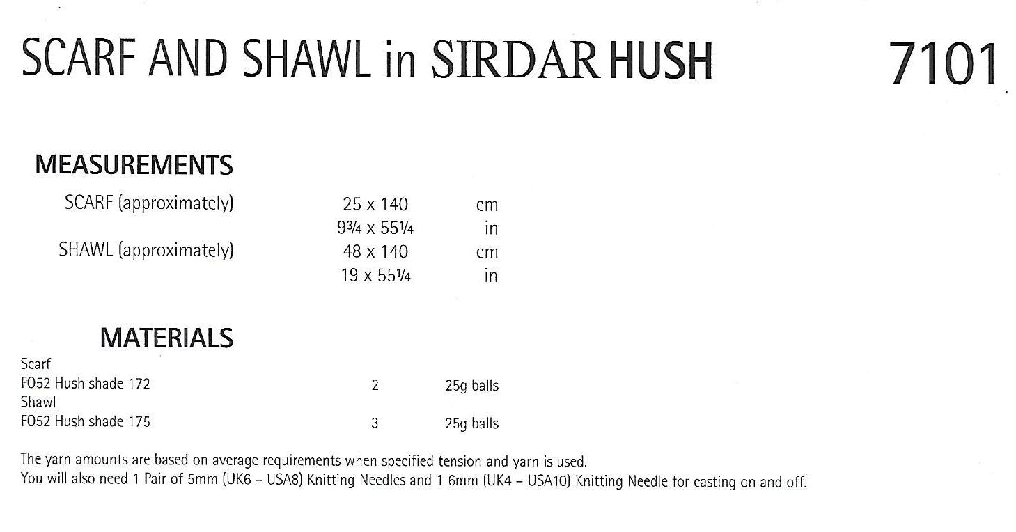 Knitting Pattern 7101 - Scarf & Shawl in Sirdar Hush Lace Weight