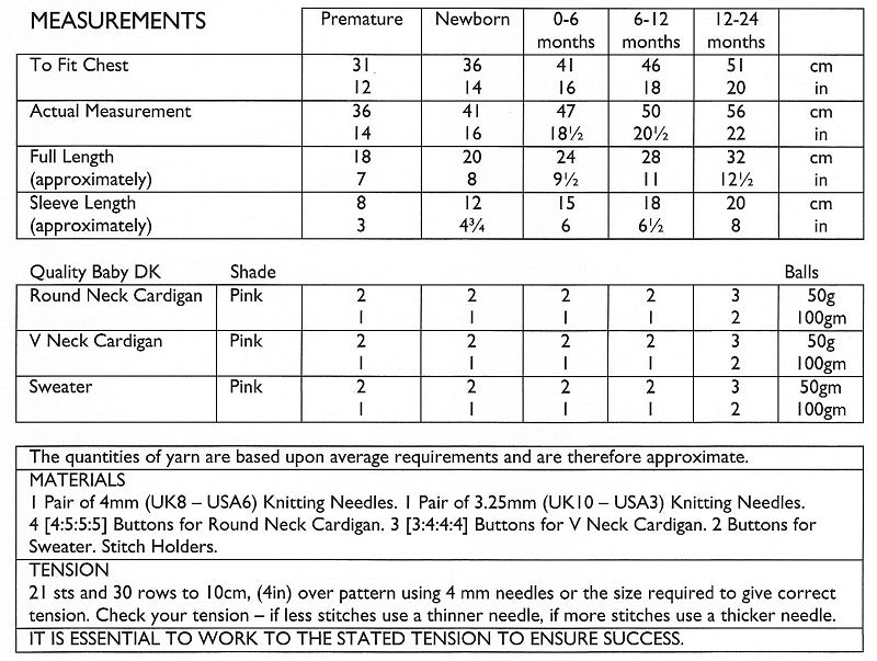 Knitting Pattern UKHKA/87 - Baby Cardigans & Sweater in DK