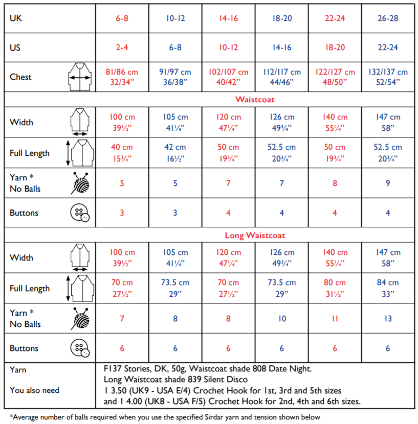 You will also need: 1 3.50 (UK9 - USA E/4) Crochet Hook for 1st, 3rd and 5th sizes and 1 4.00 (UK8 - USA F/5) Crochet Hook for 2nd, 4th and 6th sizes.