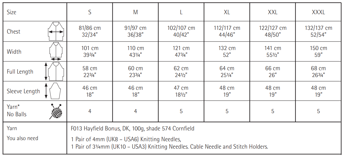 You Will Also Need: 1 Pair of 4mm (UK8 – USA6) Knitting Needles, 1 Pair of 3¼mm (UK10 – USA3) Knitting Needles. Cable Needle and Stitch Holders.