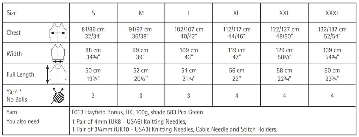 You Will Also Need: 1 Pair of 4mm (UK8 - USA6) Knitting Needles, 1 Pair of 3¼mm (UK10 - USA3) Knitting Needles, Cable Needle and Stitch Holders.