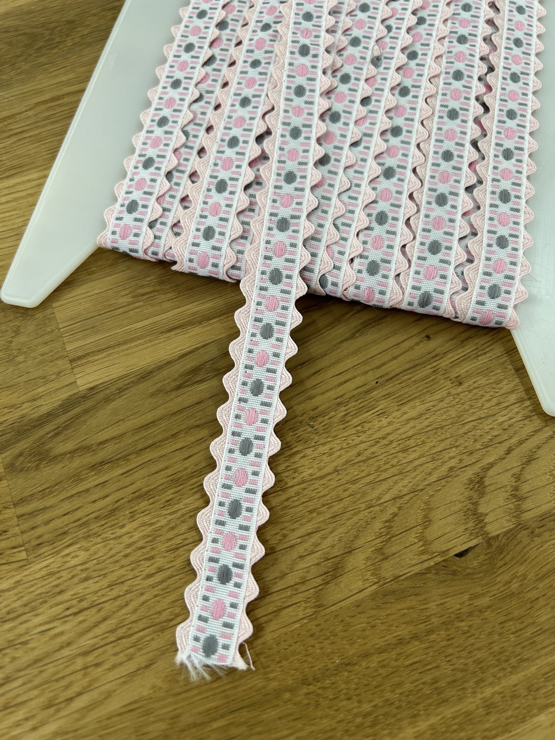 Ric Rac Ribbon Trim - 20mm - Pink/Grey